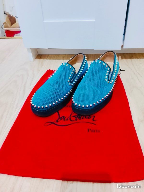 Élégante Basket Christian Louboutin Spikes Boat Design Filet Bleuté Clouté