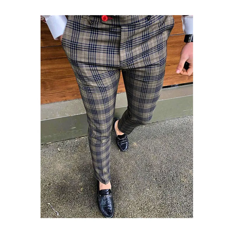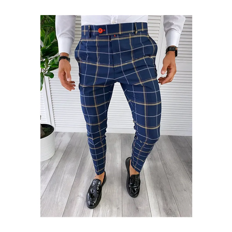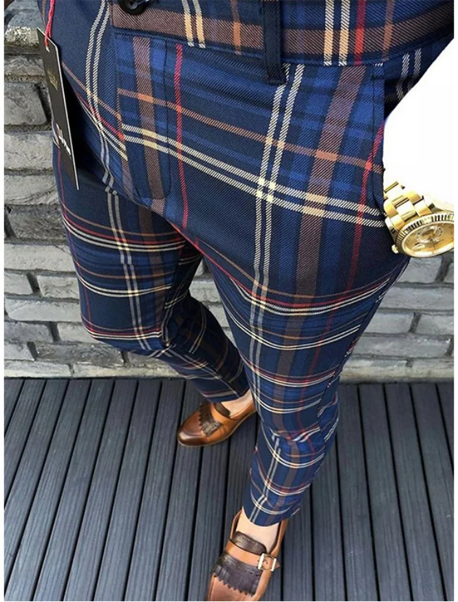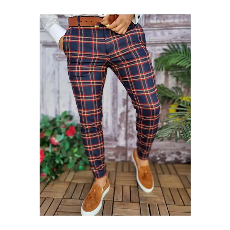 Pantalon décontracté Vintage rayé, crayon Slim hommes taille moyenne élastique Skinny