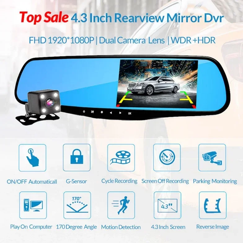 Mot-clé : Caméra à double objectif Dashcam 4,3 pouces Full Hd 1080p
